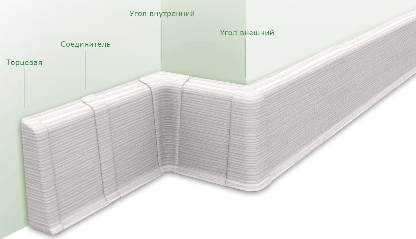 Внешний (наружный) угол предназначен для соединения плинтуса во внешних углах, а также выполняет декоративную функцию.