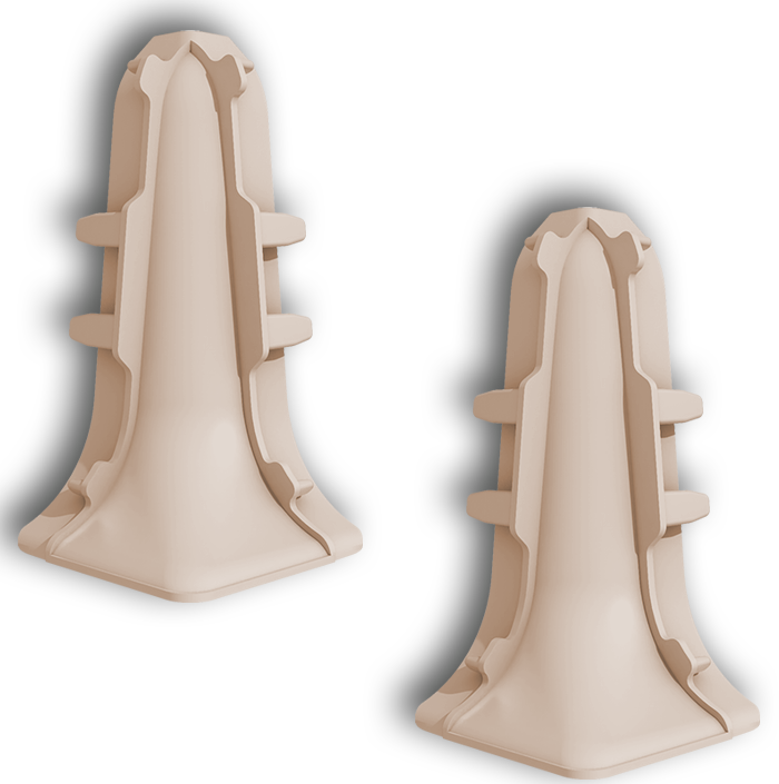 Внутренний уголок надежно фиксирует части плинтуса и обеспечивает плотное прилегание к стене, защищая плинтус от истирания и повреждения.