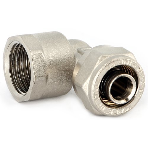 Угольник для металлопластика обжим 16мм х 3/4дюйма ВР - используется для подключения металлопластиковых труб с диаметром 16мм к другим системам с внутренней резьбой 3/4'' с помощью резьбового соединения. С помощью угольника можно изменить направление коммуникаций на 90 градусов.