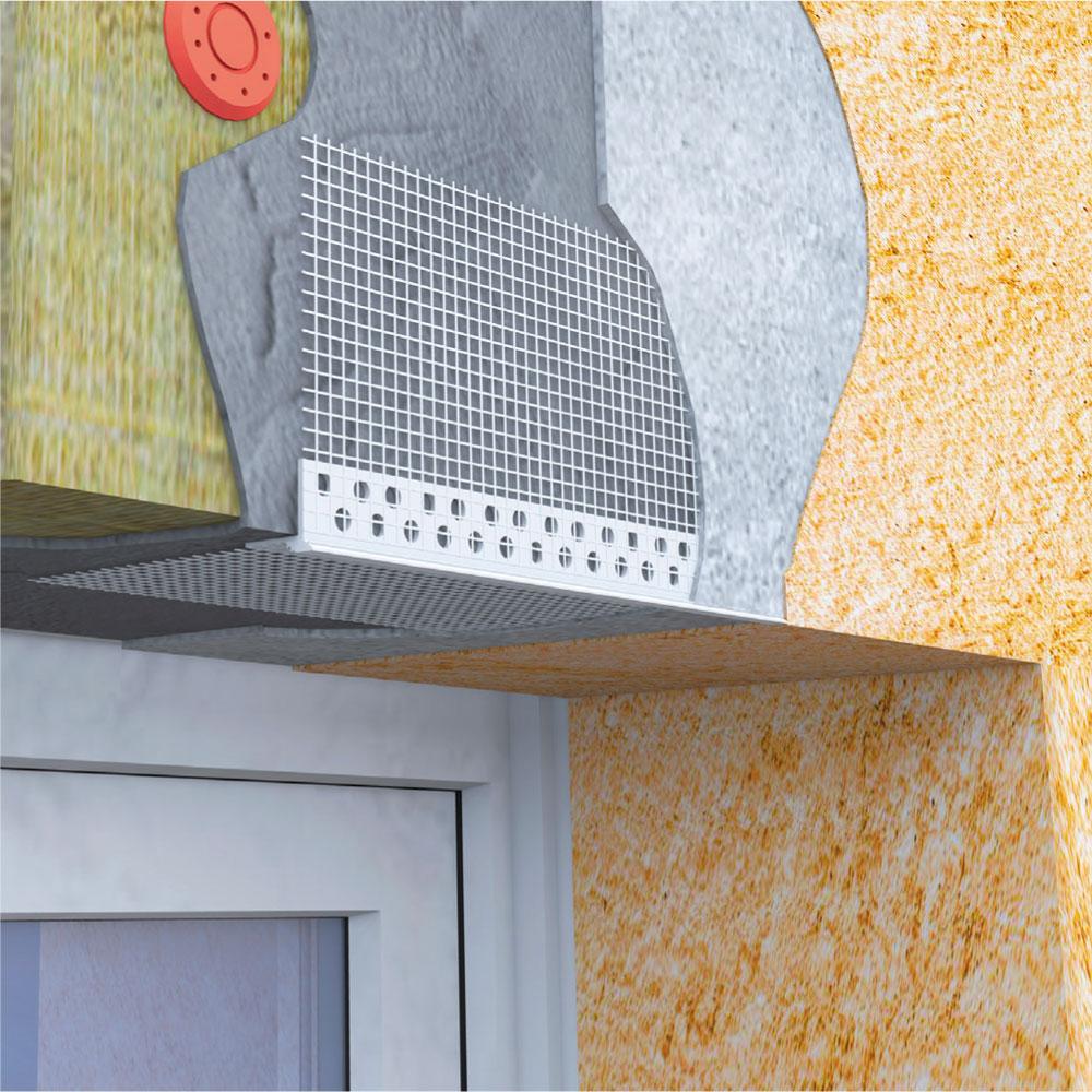 Форма профиля-капельника позволяет отводить влагу от утеплителя, а стеклотканевая сетка защищает поверхность от трещин и механических повреждений.
