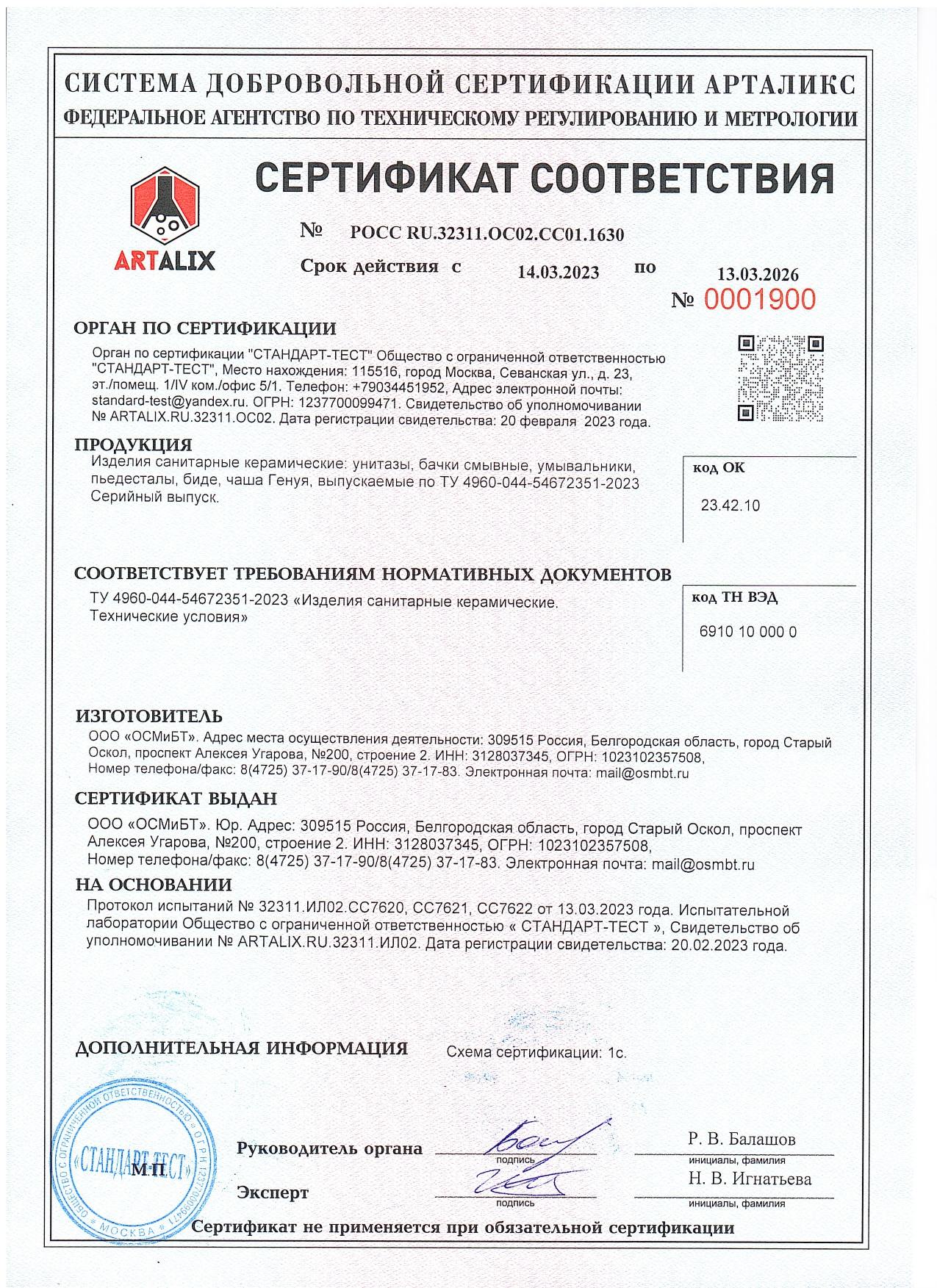 | Материал: | Санитарный фарфор |