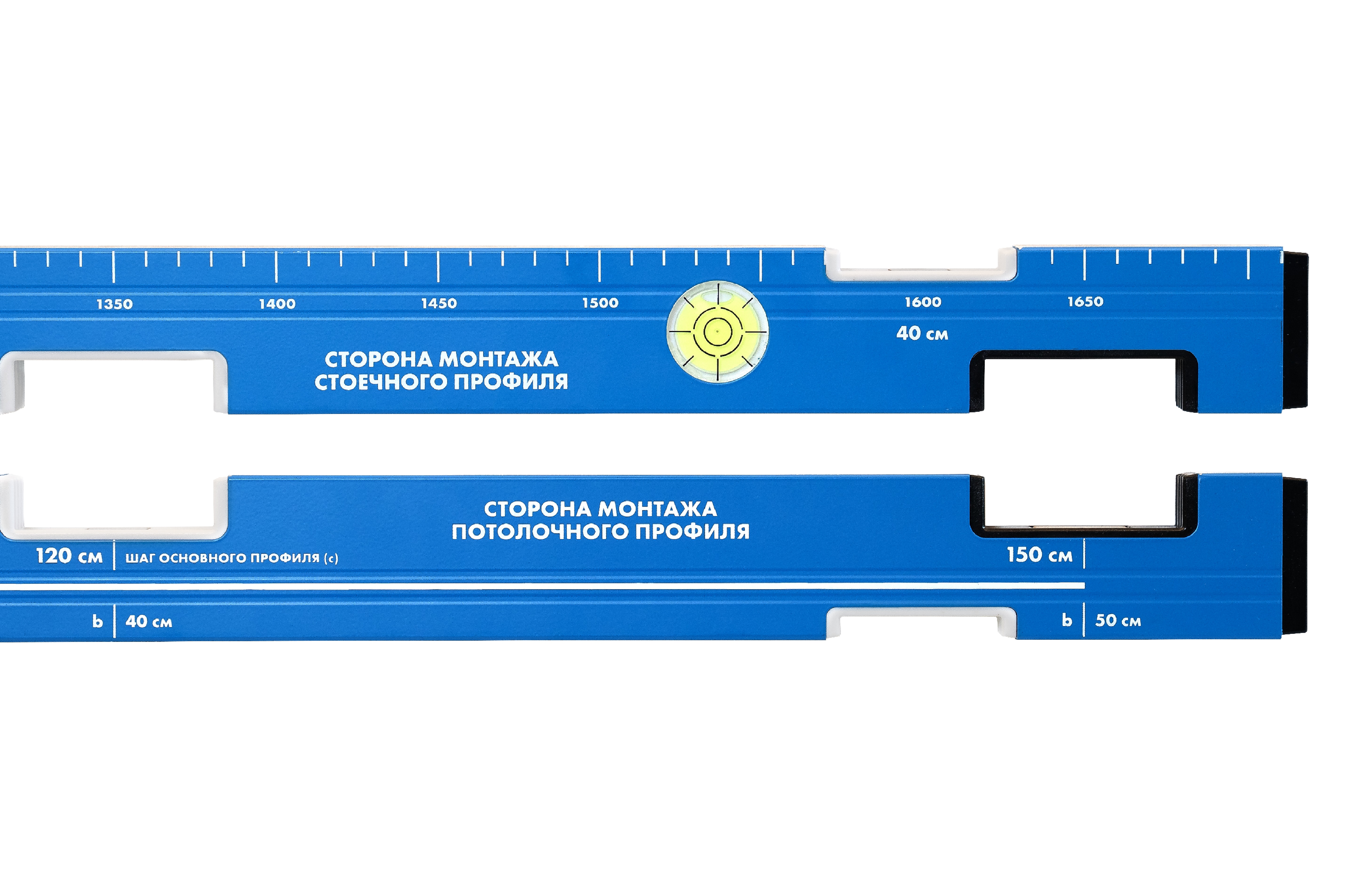 - На уровне нанесены подсказки для комфортного и точного монтажа каркаса.