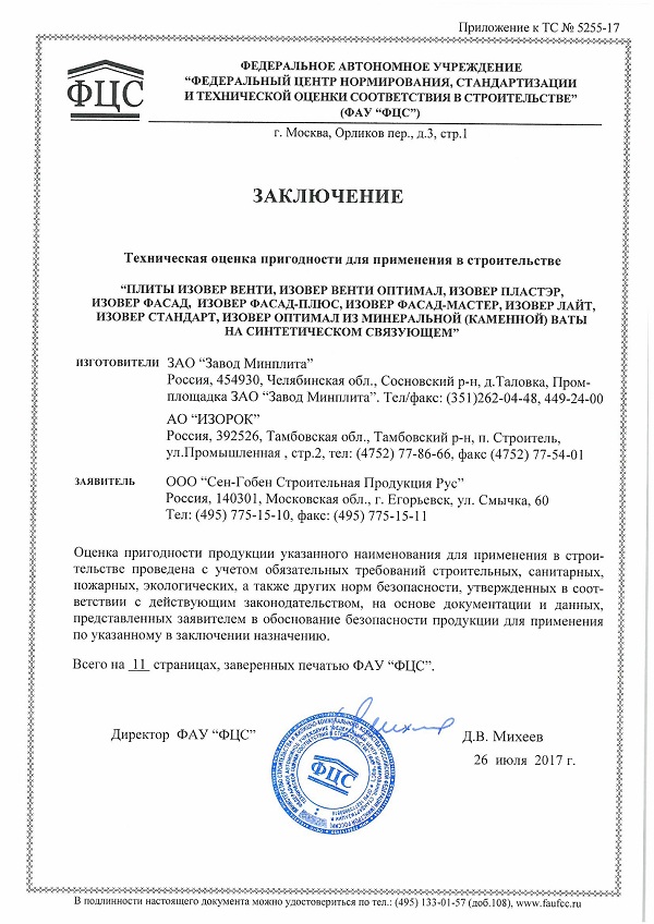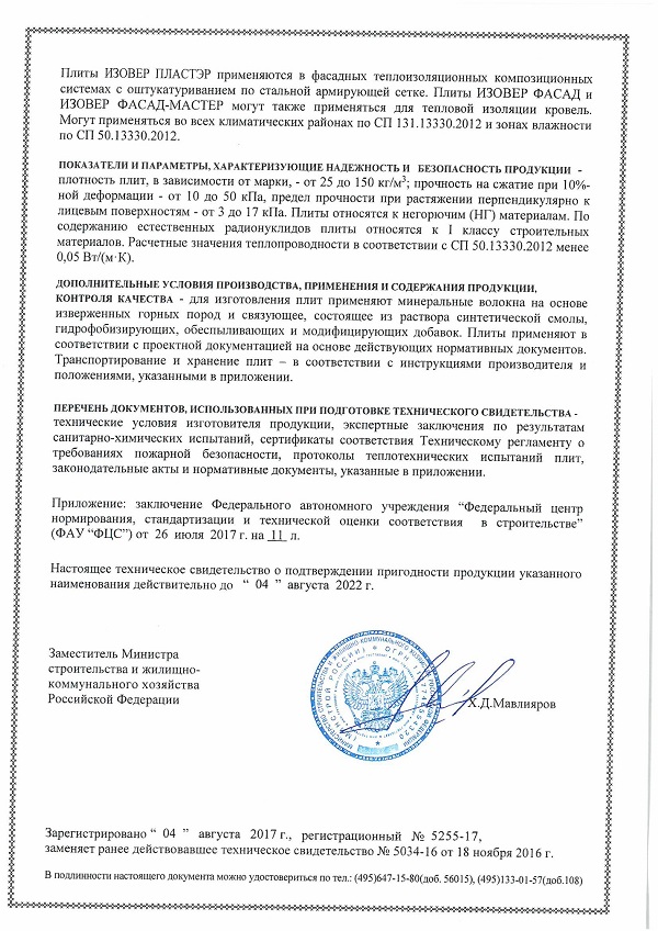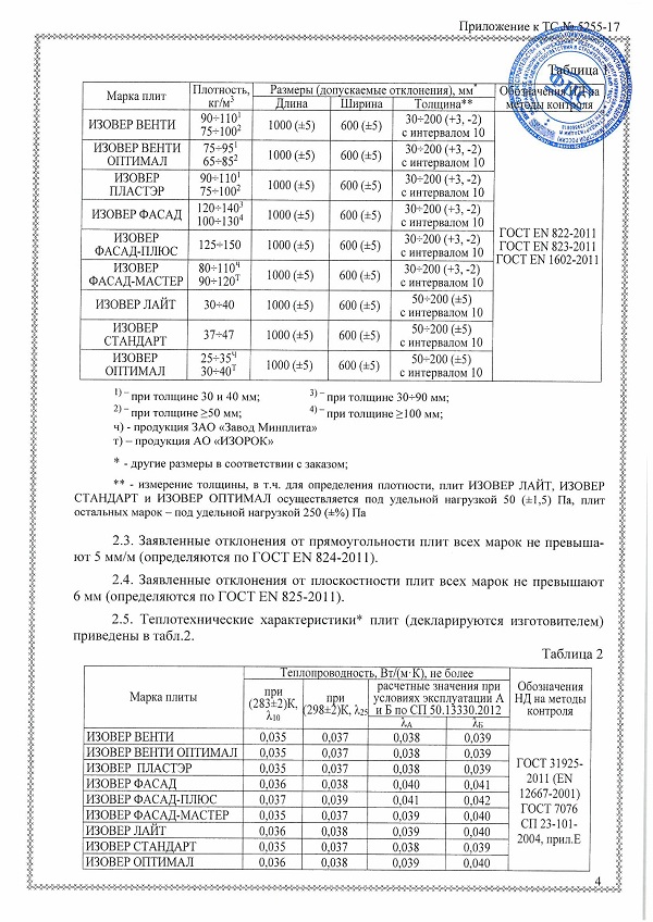 Технические данные теплоизоляции ИЗОВЕР Стандарт