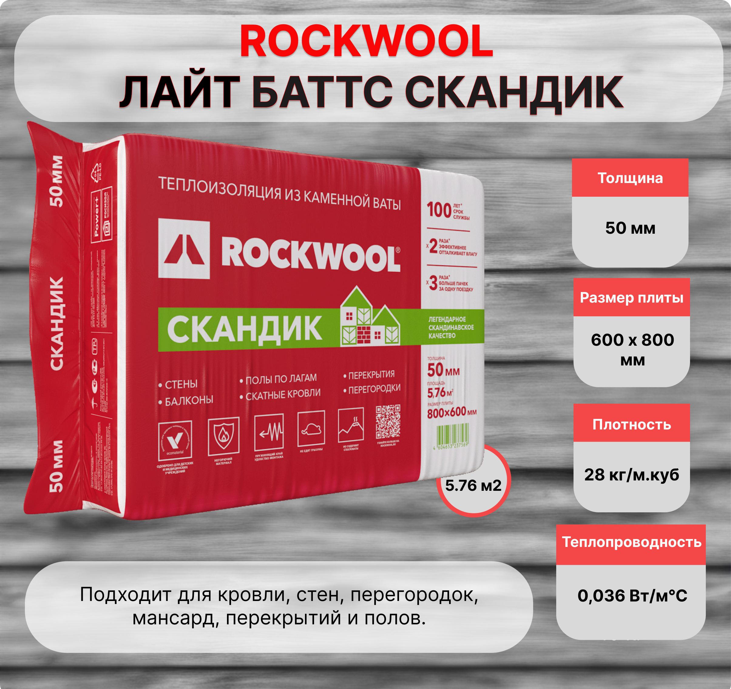 ЛАЙТ БАТТС Скандик – лёгкие гидрофобизированные теплоизоляционные плиты, изготовленные из каменной ваты на основе базальтовых пород.