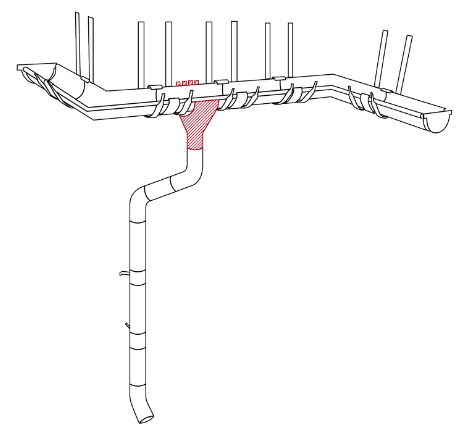 Воронка желоба – это элемент водосточной системы, устанавливаемый на водосточном желобе и предназначенный для слива воды из желоба в водосточную трубу. Максимальное расстояние между воронками желоба -10 погонных метров.