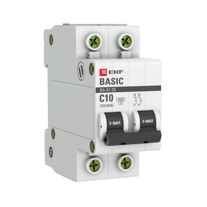 Выключатель автоматический ВА47-29 2P 10А 4,5кА тип С EKF Basic