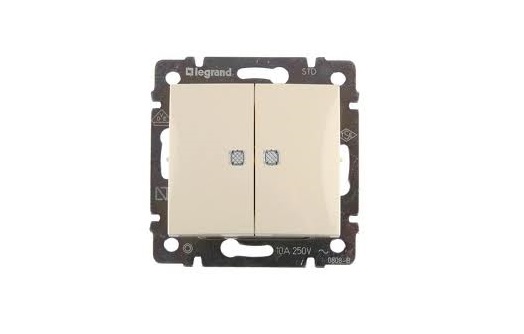 Выключатель скрытый Legrand Valena 2-клавишный с подсветкой слоновая кость арт774328 предназначен для включения и отключения освещения в помещениях.
