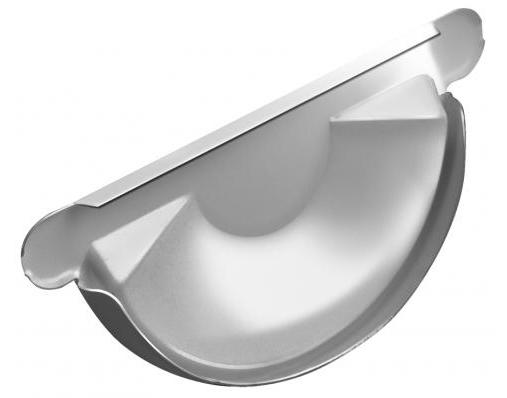 Заглушка желоба - это элемент водосточной системы, который устанавливается на торцах желоба для обеспечения фиксации, герметичности и жесткости желоба. Заглушку можно устанавливать как с левого, так и с правого края желоба. Стык желоба и заглушки необходимо заполнить кровельным герметиком.