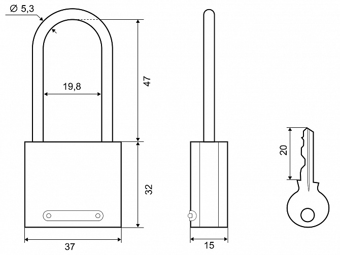 303F-40L от «Фабрики замков» — недорогой навесной замок из чугуна и стали с удлиненной дужкой. Небольшого размера (37 x 32 мм), универсален, рекомендован для использования внутри помещений - кабинки, комоды, шкафчики на рабочих местах и т.д.