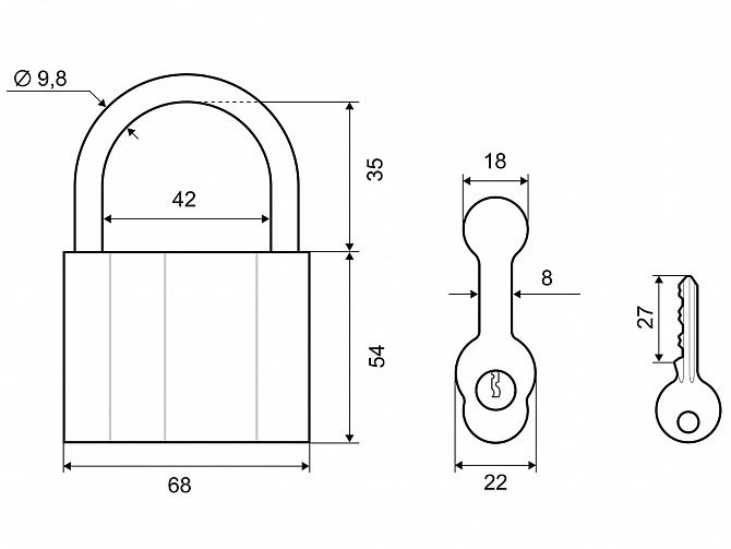 В комплект входят: навесной замок, 3 английских (плоских) ключа.