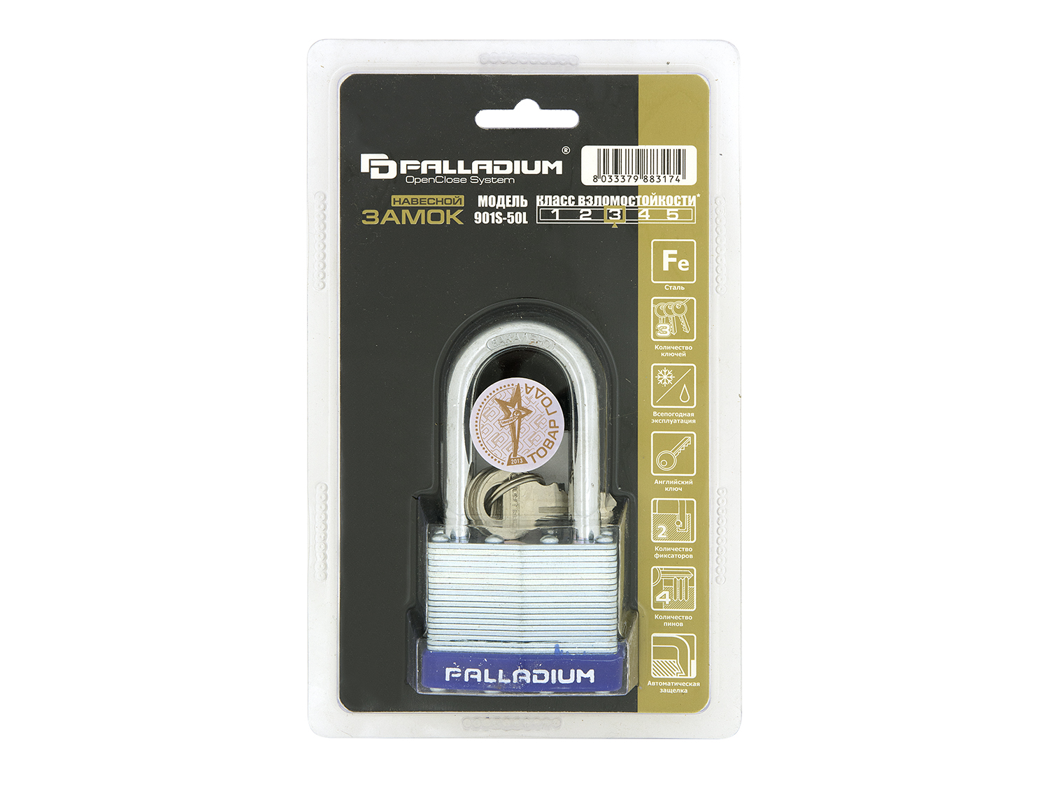 Навесной замок Палладиум 901S-50L - это антивандальный навесной замок, который можно использовать как на улице, так и в помещении. Защищает гаражи, склады и ворота от краж.