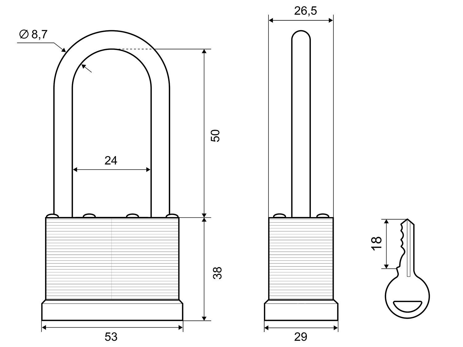 В комплект входят: замок, три английских ключа.