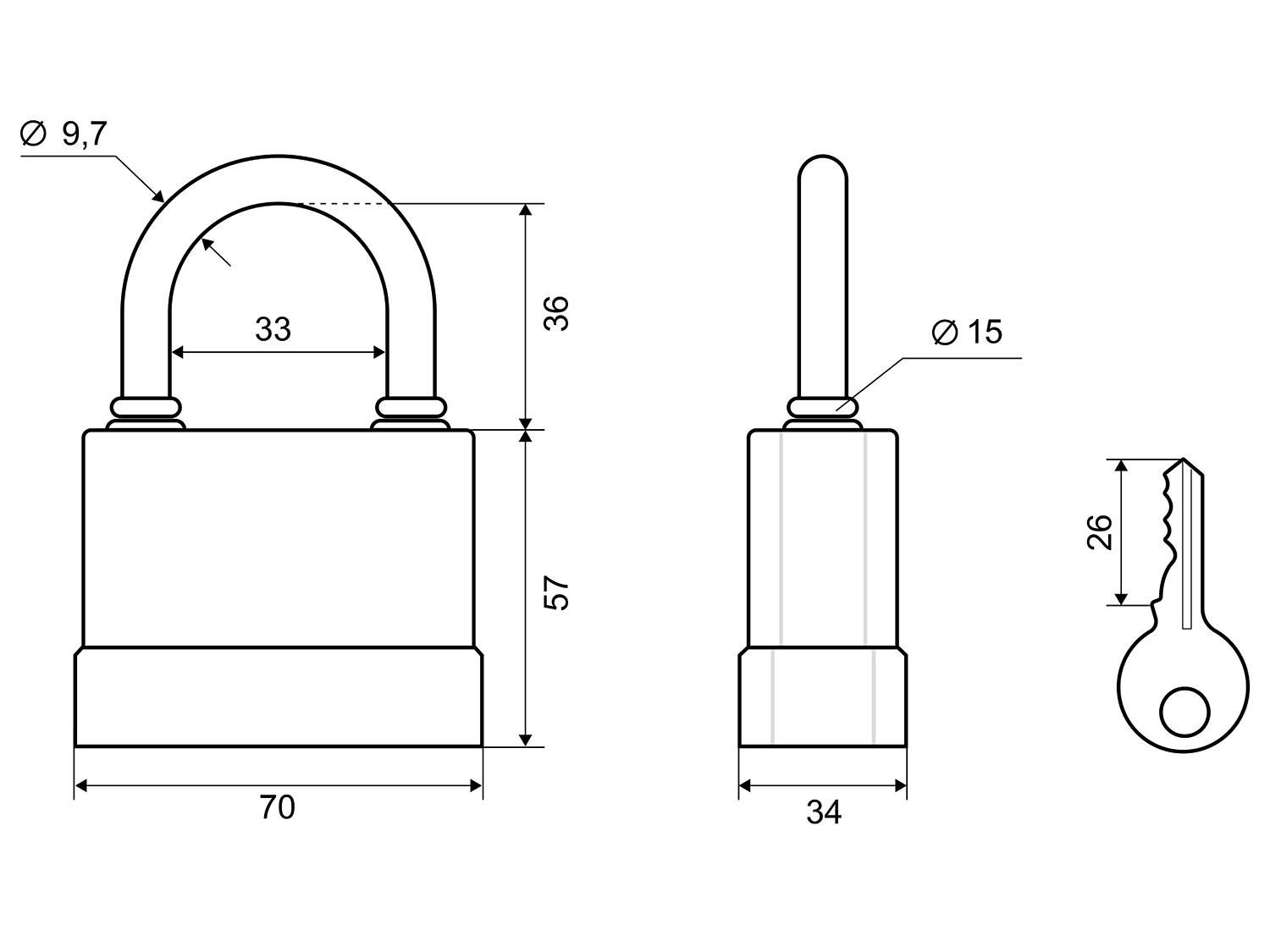 - Проем дужки 33x36 мм - взломостойкое отверстие (с учетом проушин) не позволяет удобно использовать ножовку или кусачки.