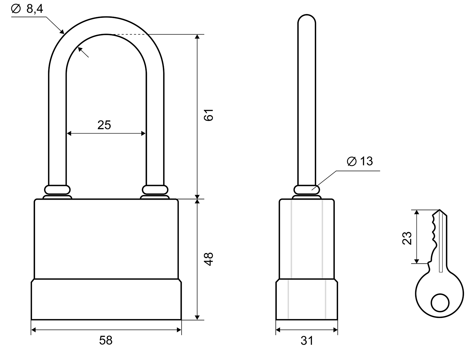 - Удлиненная дужка: высота проема 61 мм.