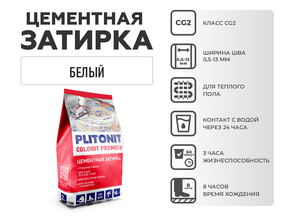 Затирка Плитонит Сolorit Premium белая 2 кг пакет