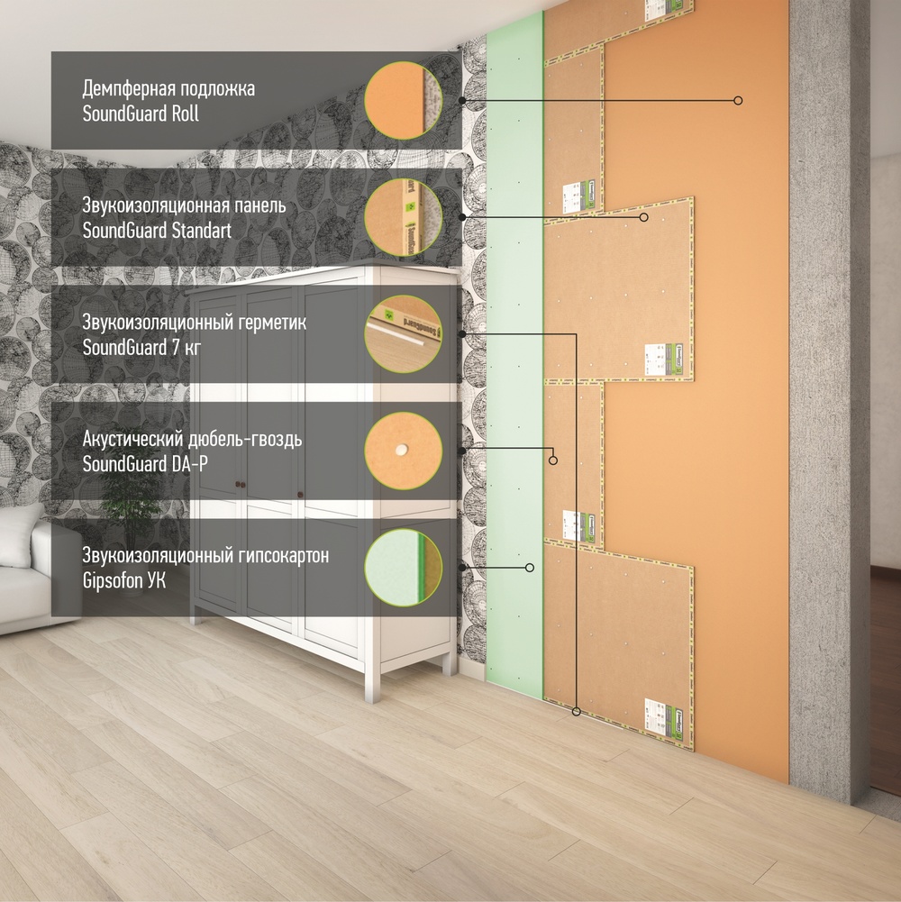 Акриловый высокоэластичный герметик, предназначенный для заполнения швов, стыков, трещин, отверстий, строительных дефектов и недемпфированных связей в звукоизоляционных конструкциях.